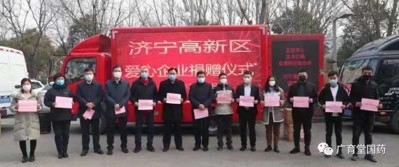 疫情蔓延以來,藥品物資供應(yīng)緊張,廣育堂國(guó)藥啟動(dòng)各生產(chǎn)線,春節(jié)期間加班加點(diǎn)生產(chǎn),確保疫情期間的藥品供應(yīng)。在原本藥品供應(yīng)緊張的情況下,廣育堂國(guó)藥向疫區(qū)捐贈(zèng)大量防疫藥品,廣育堂國(guó)藥總經(jīng)理杜新磊緊急調(diào)動(dòng)各方資源,帶隊(duì)搬運(yùn)物資。疫情就是命令,防控就是責(zé)任,作為一家440多年歷史的中醫(yī)藥老字號(hào)企業(yè),廣育堂國(guó)藥始終堅(jiān)守“廣濟(jì)世,育眾生”的祖訓(xùn),在國(guó)家危機(jī)之時(shí),積極承擔(dān)社會(huì)責(zé)任,與國(guó)家同命運(yùn),為人民健康保駕護(hù)航!