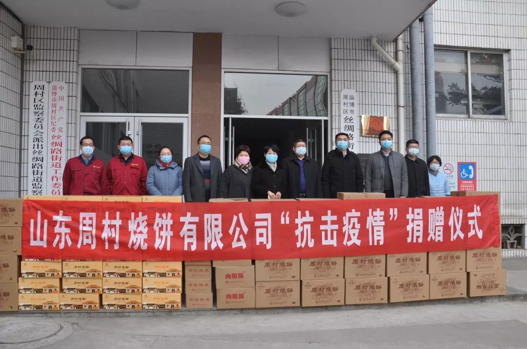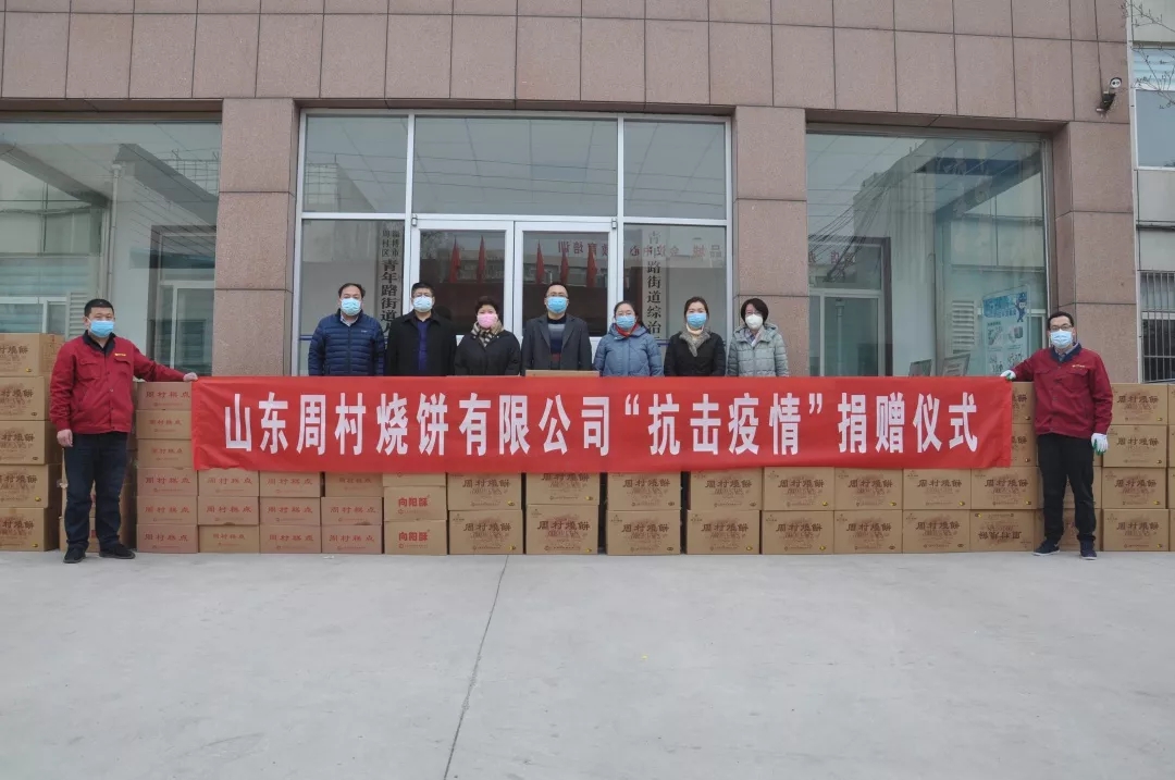 2月1日,山東周村燒餅有限公司向南郊鎮(zhèn)、王村鎮(zhèn)、絲綢路街道、大街街道、永安街街道、青年路街道、衛(wèi)生健康局、交通運(yùn)輸局、周村經(jīng)濟(jì)開發(fā)區(qū)等捐贈(zèng)糕點(diǎn)1300公斤、向陽酥700提、燒餅1500提、現(xiàn)金捐款50000元,共計(jì)30余萬元的款物,助力抗擊疫情!